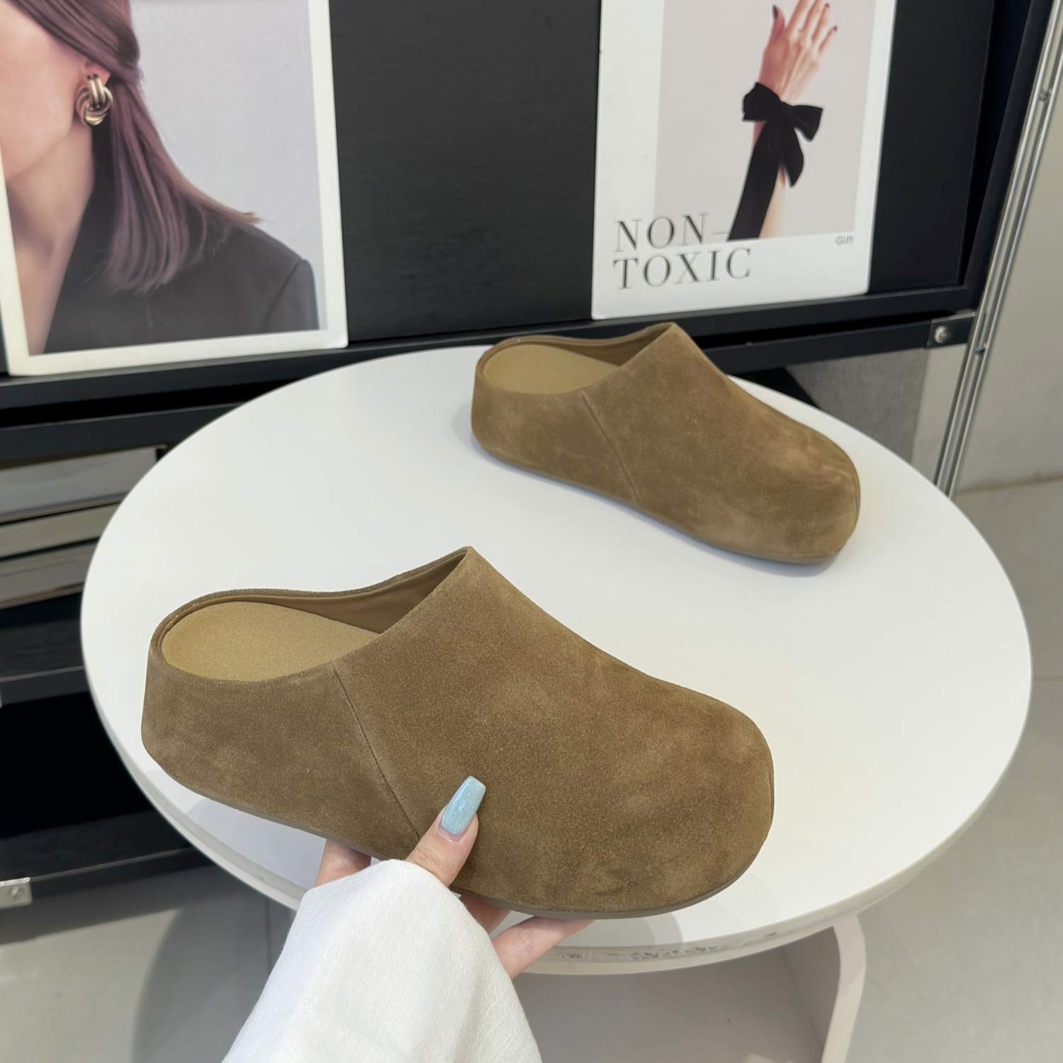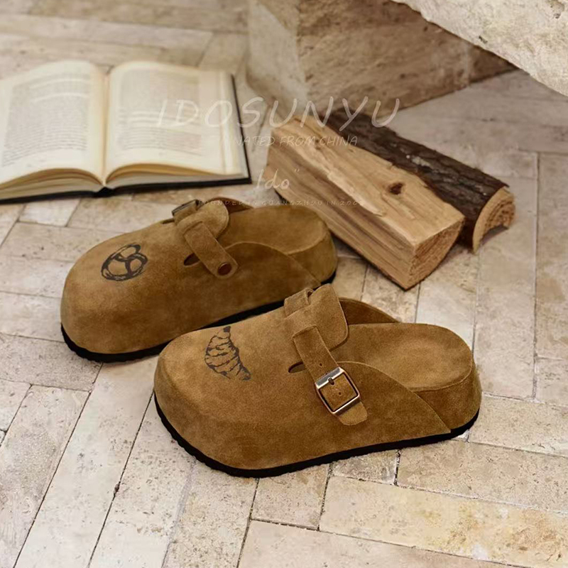 复古百搭休闲绒面勃肯鞋女2025秋季新款厚底增高袋鼠鞋包头半拖鞋
