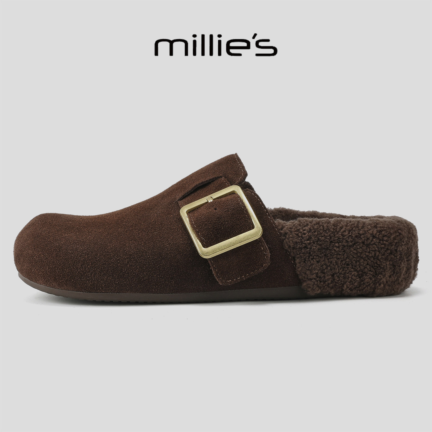 MILLIE'S/妙丽2025冬季新款加绒保暖半包拖鞋勃肯鞋懒人休闲女鞋
