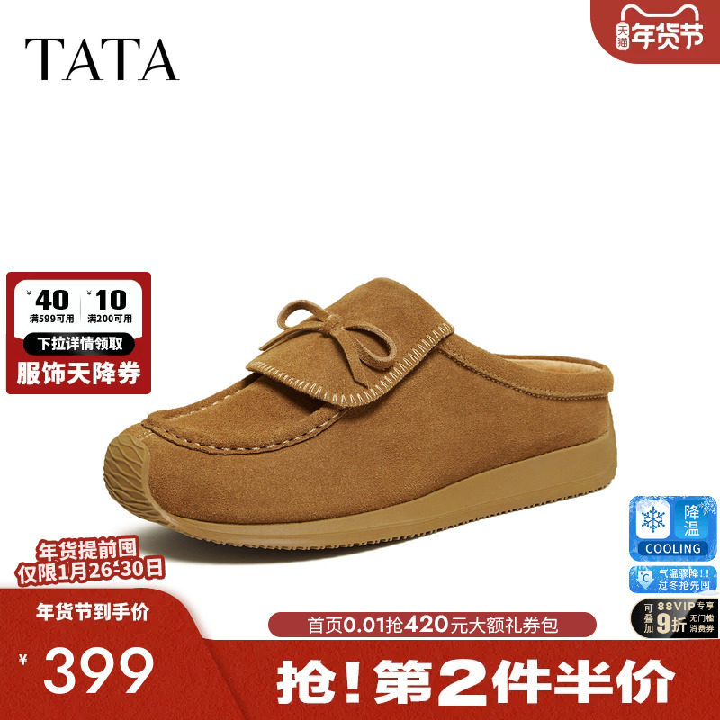 TATAFOCUS~小土豆博肯鞋包头拖鞋4厘米2026春季反绒皮半拖330-09