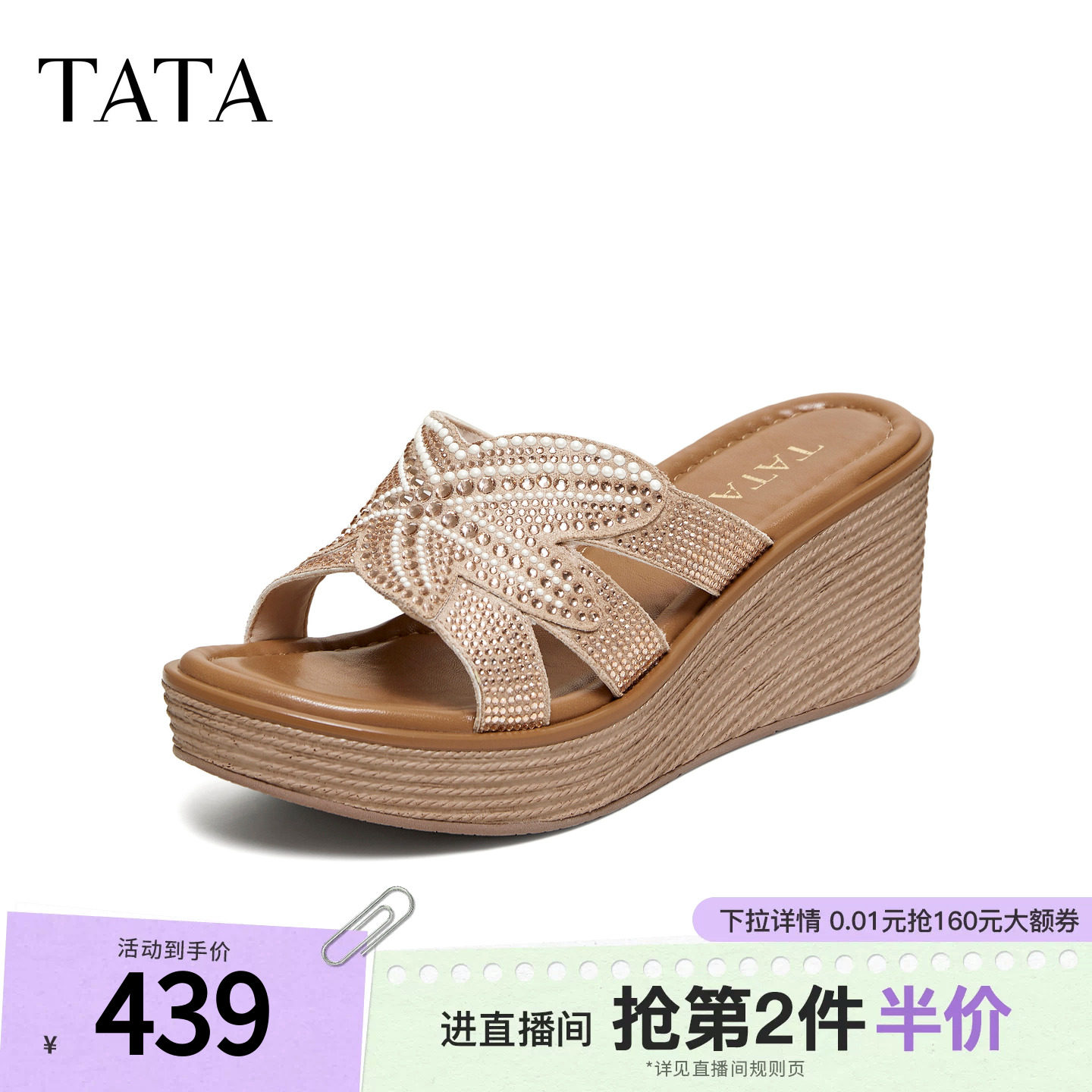 TATA他她女鞋2026夏季新款简约百搭增高厚底休闲女拖鞋7MYA5BT6