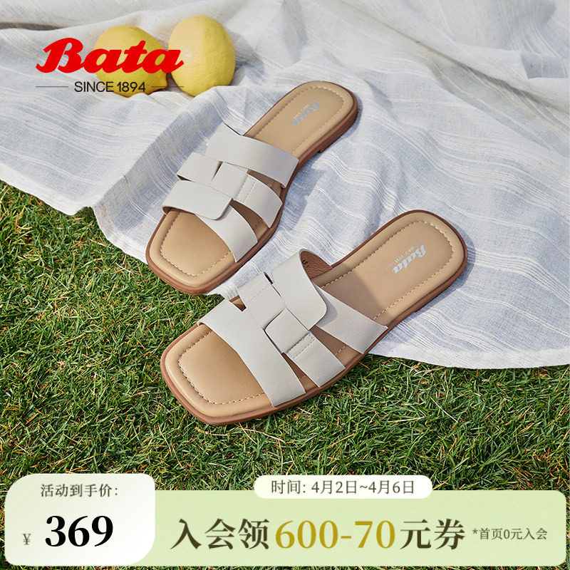 Bata罗马假日拖鞋夏季商场新款羊皮舒适软底外穿凉拖ARP17BT4