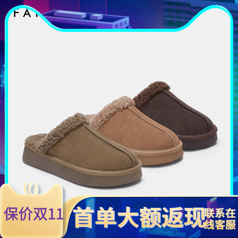 73hours女鞋暖暖热巧春季新款一脚蹬外穿平底毛毛鞋女勃肯拖鞋