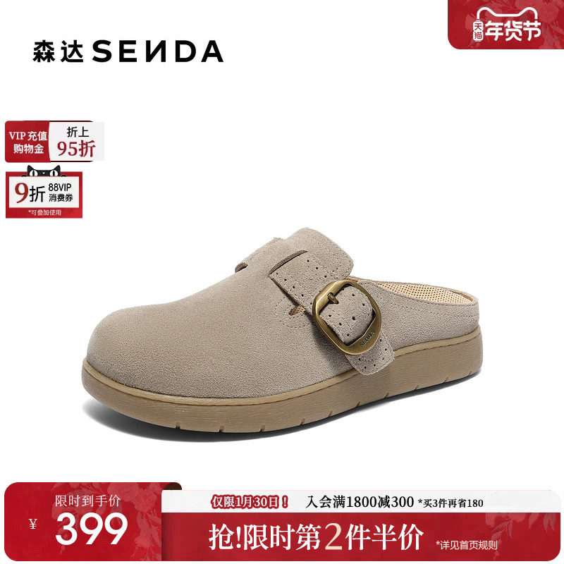 撤柜断码处理2025新款反绒皮勃肯鞋女加绒软底一脚蹬包头外穿拖鞋