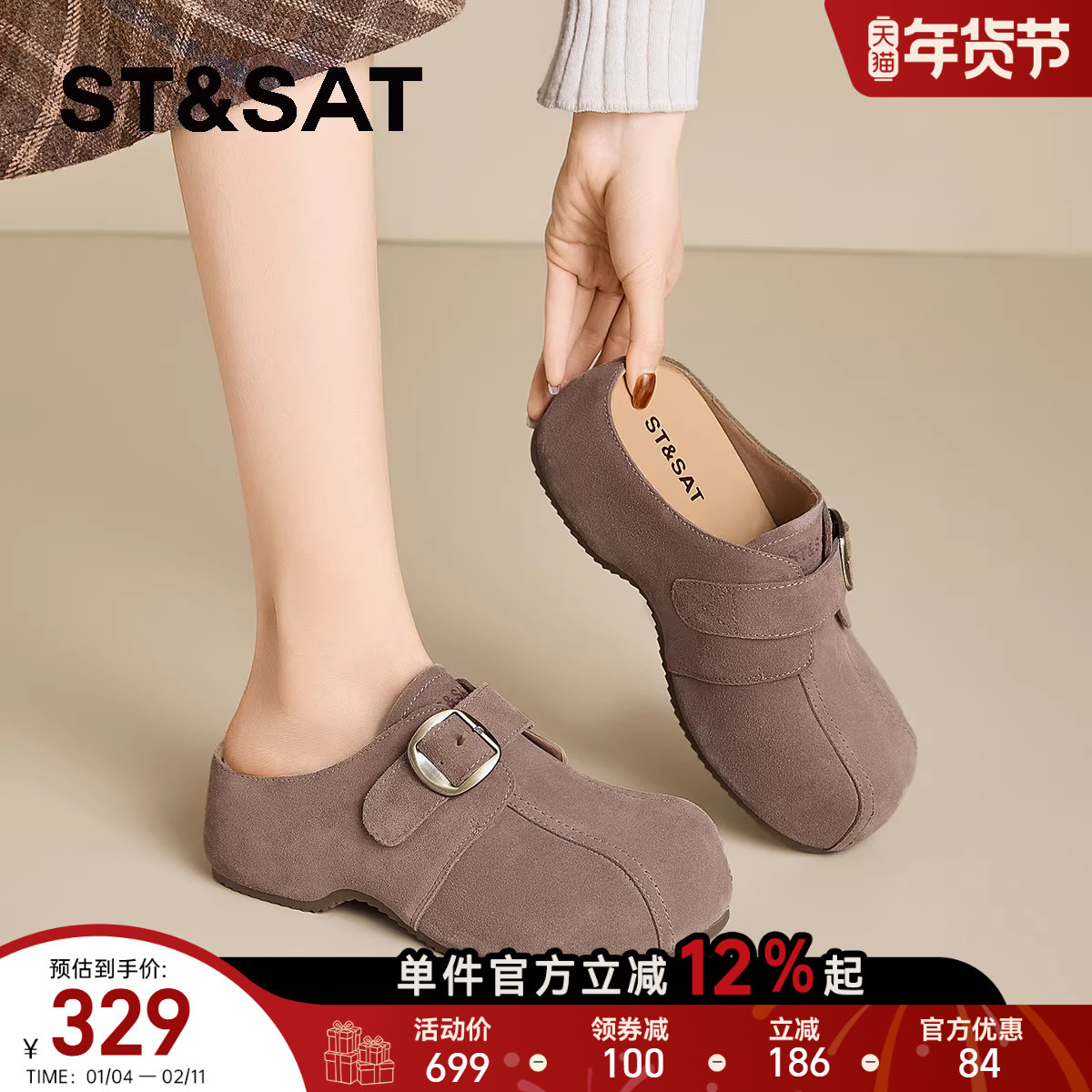 【新年穿搭】骆驼勃肯鞋女鞋真皮加绒单鞋一脚蹬包头拖鞋穆勒半拖