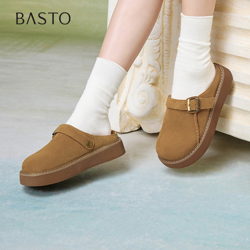 百思图2025春新款复古舒适勃肯鞋懒人拖鞋厚底女休闲单鞋BG133AH5