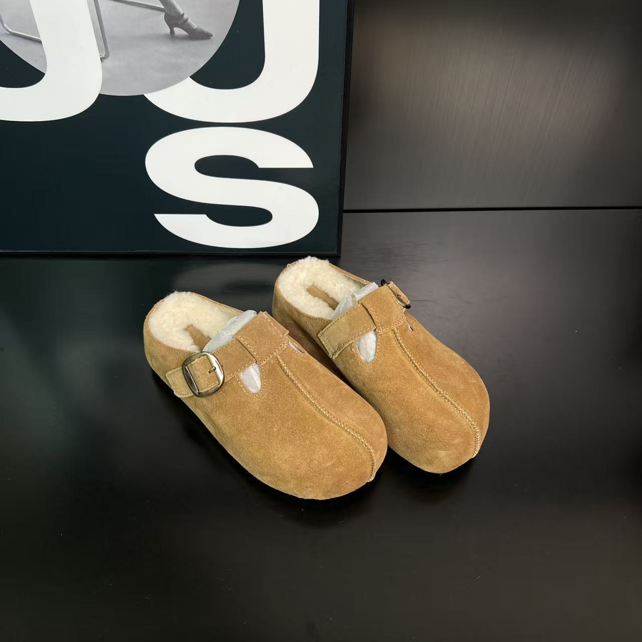 巨好看博肯鞋女冬2025新款爆款勃肯包头半拖鞋女外穿一脚蹬毛拖鞋