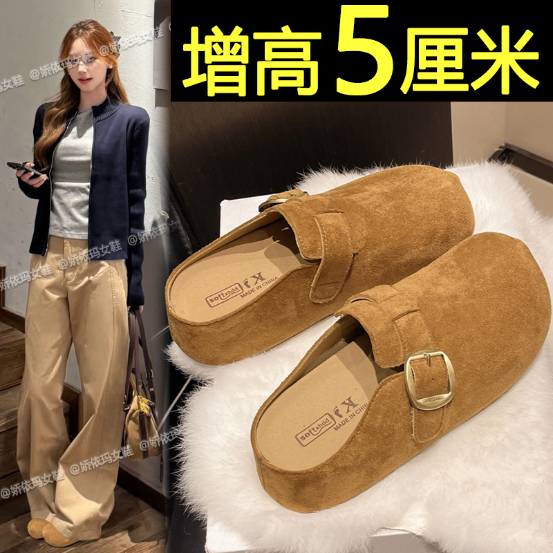 内增高勃肯鞋女2025秋季新款吐司鞋厚底真皮包头半拖鞋外穿一脚蹬