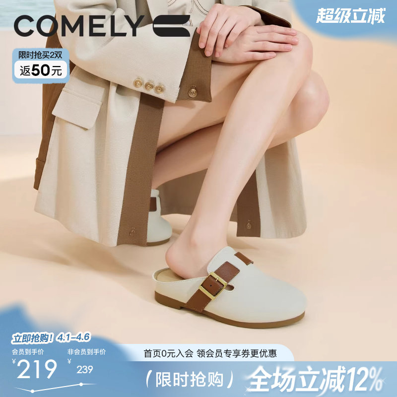 康莉真皮勃肯鞋半拖鞋女外穿新款夏季休闲穆勒鞋包头鞋一脚蹬博肯