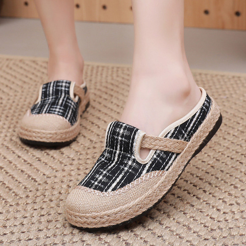 夏季老北京布鞋女半拖包头亚麻拖鞋外穿休闲复古渔夫鞋懒人一脚蹬
