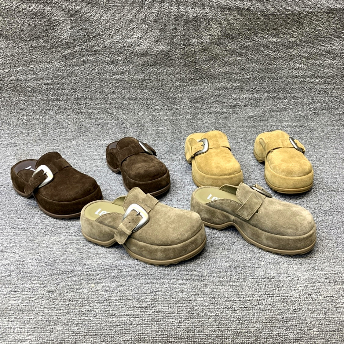 欧洲站女鞋2026春季新款欧货磨砂皮厚底包头勃肯鞋拖鞋女外穿半拖