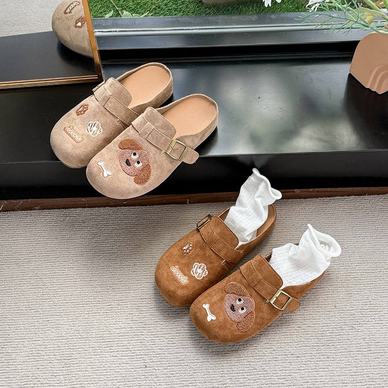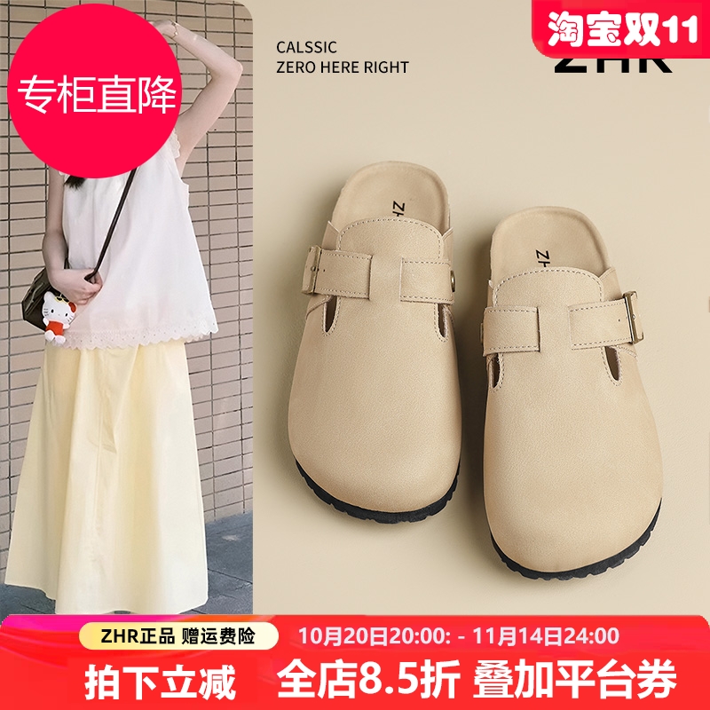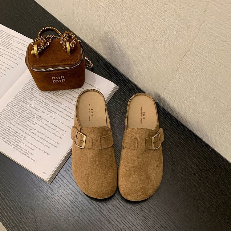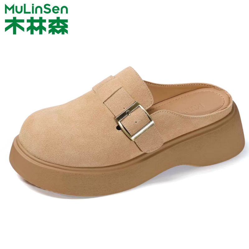 木林森女鞋2025秋季新款包头半拖鞋女外穿平底休闲软底复古勃肯鞋