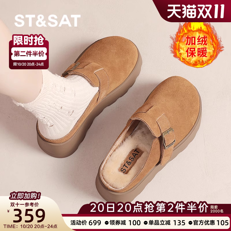 星期六厚底增高勃肯鞋女款包头半拖鞋外穿2025新款秋冬小个子单鞋