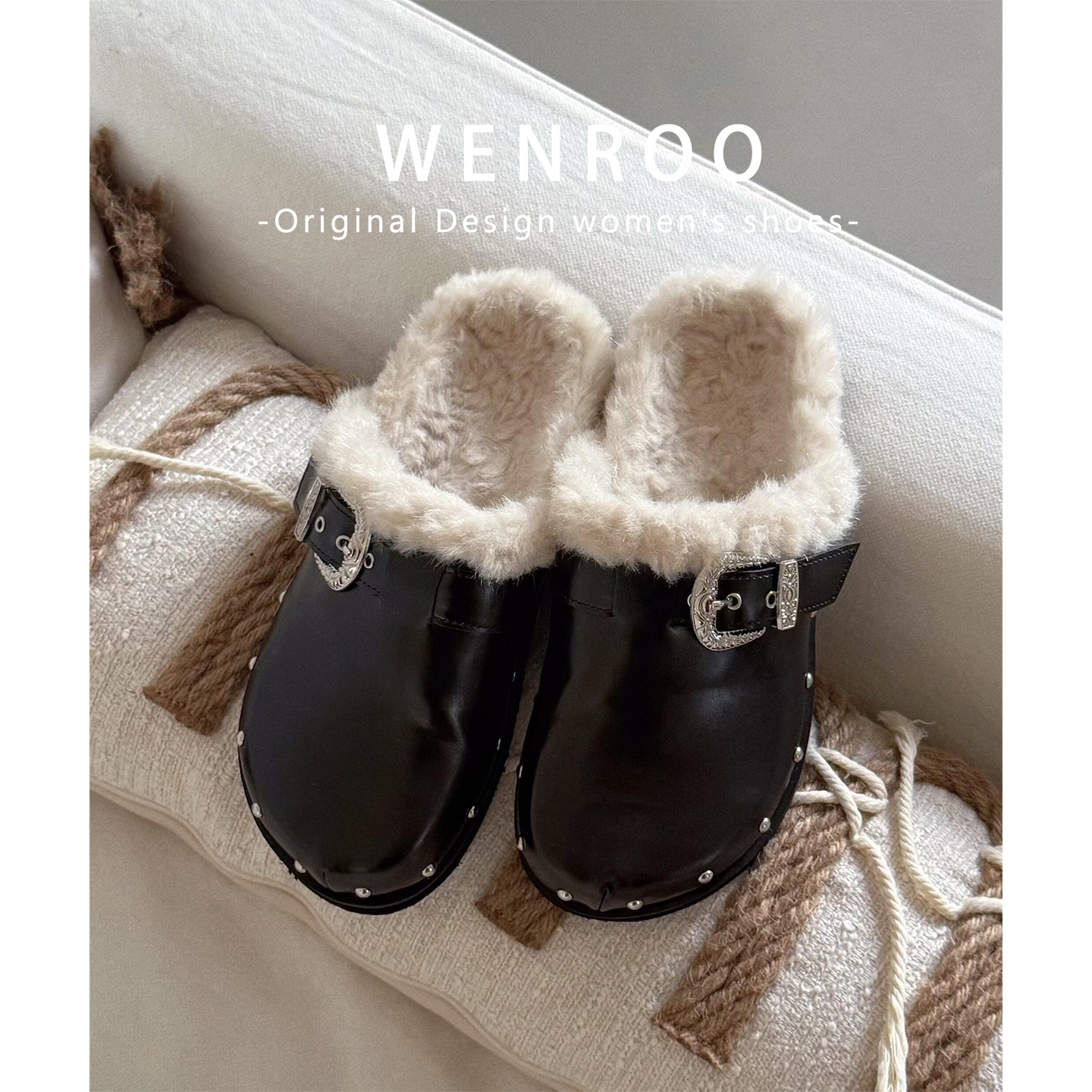 断码处理2025冬季新款女鞋舒适百搭加绒厚底勃肯鞋无包跟包头拖鞋
