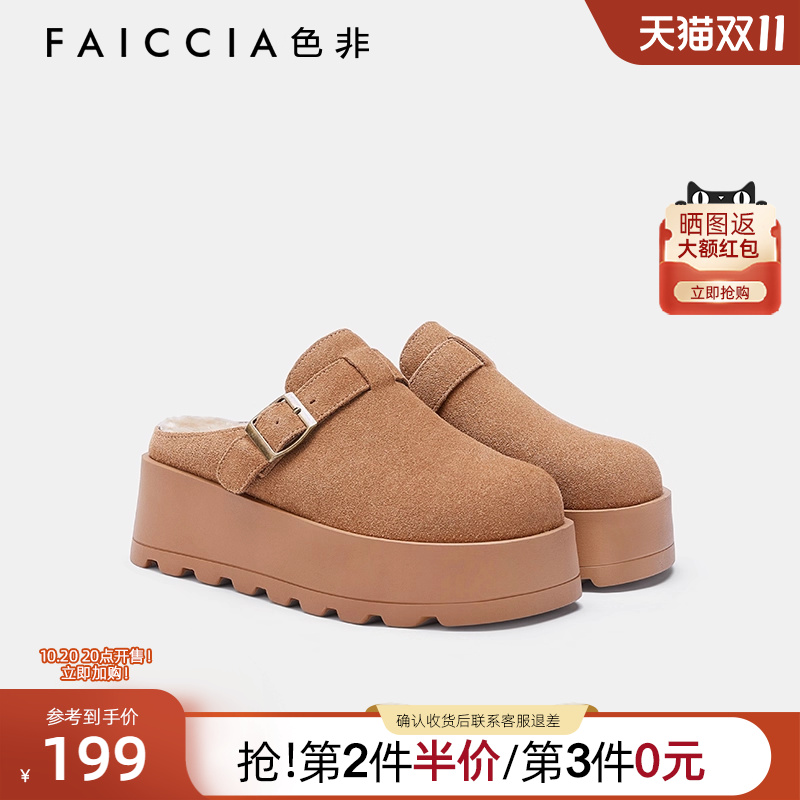 色非加绒包头半拖鞋女厚底勃肯拖2025冬季新款时尚保暖增高女鞋