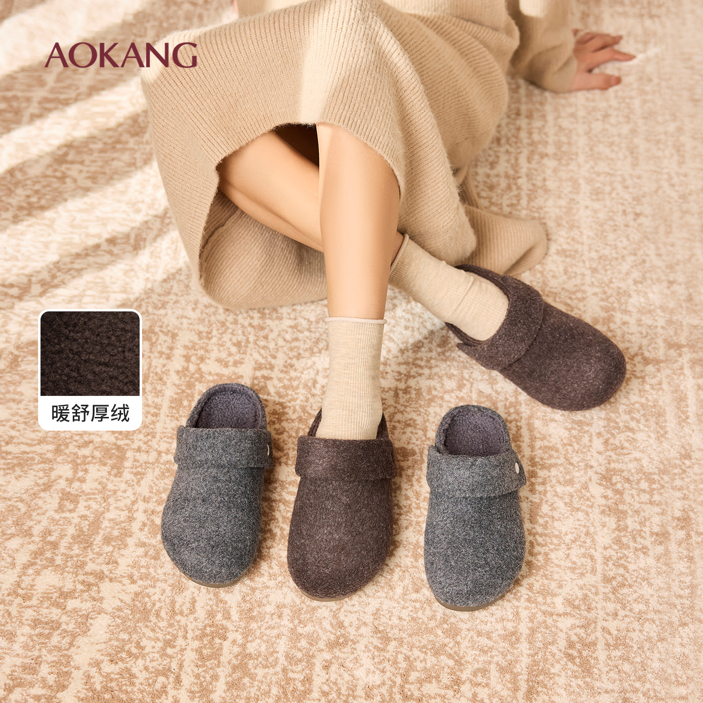 奥康 女鞋2025冬季勃肯鞋加绒保暖毛毡鞋两穿糯叽叽拖鞋平底