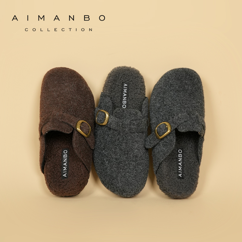 漫步佳人2025冬季新品复古平底勃肯拖鞋加绒毛毛鞋休闲可外穿拖鞋