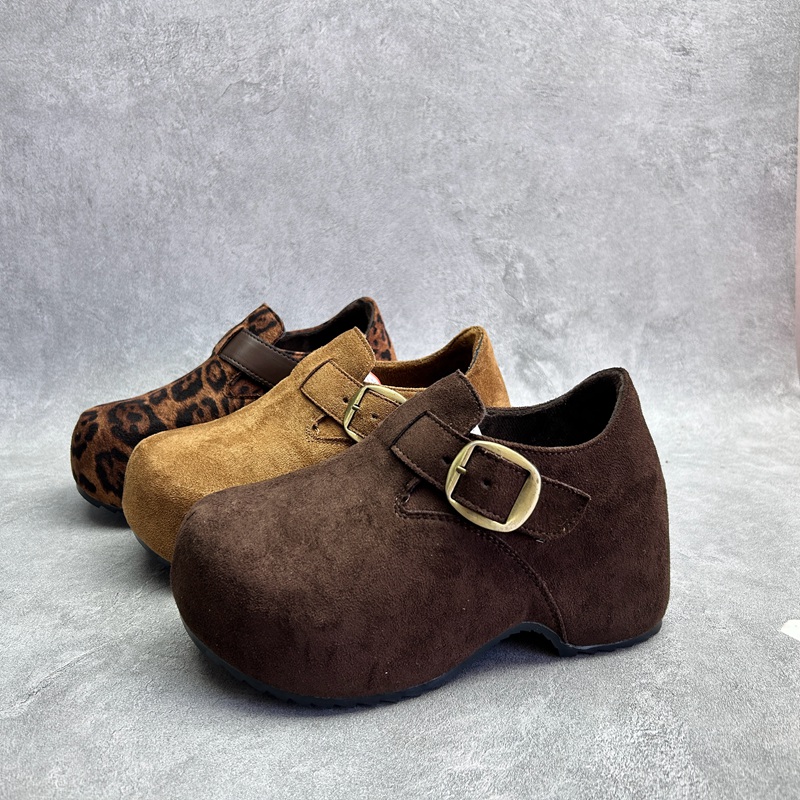 工厂25断码超纤秋季新款女鞋厚底勃肯鞋圆头松糕底复古包头女拖鞋