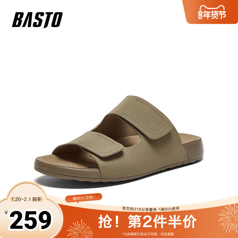 百思图2025夏季新款商场同款简约休闲勃肯鞋平跟男拖鞋FBK03BT5