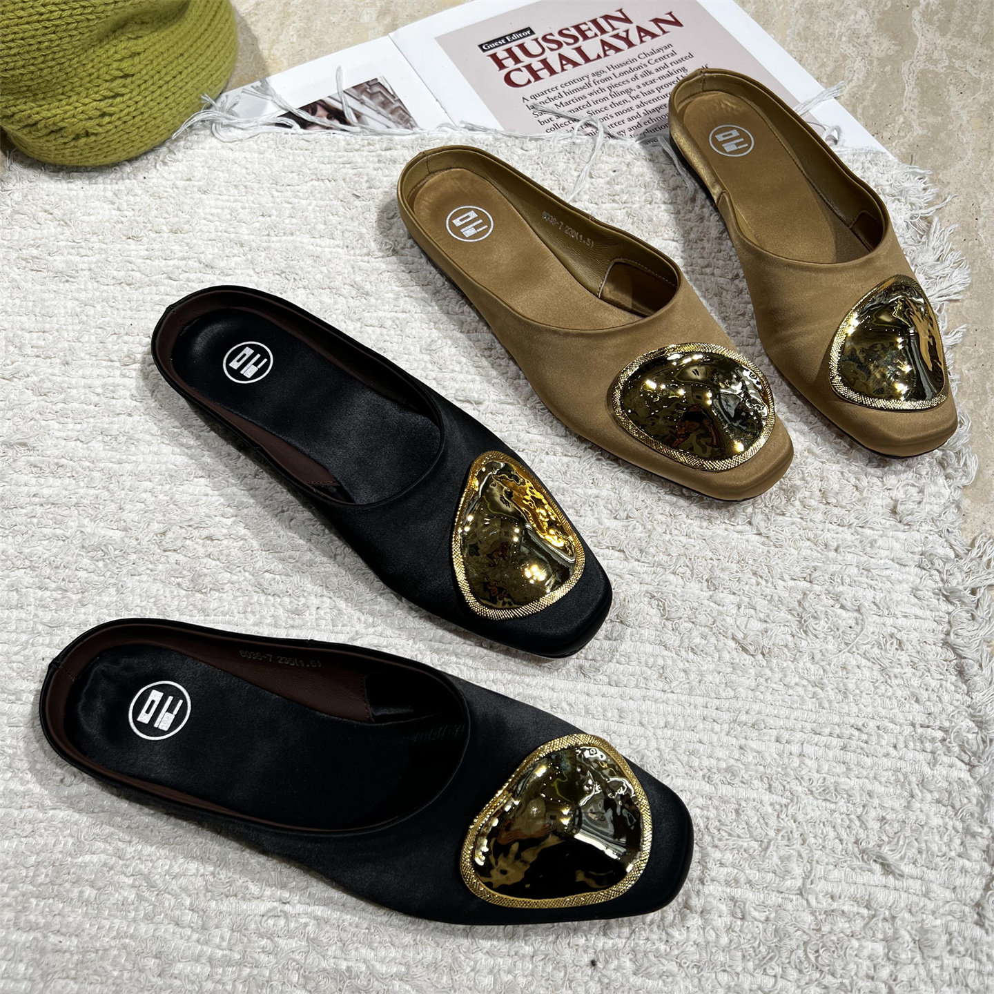 欧洲站女鞋2026春新款欧货真皮绸缎面方头平底懒人半拖鞋包头拖鞋