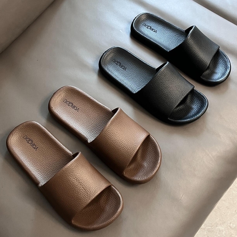 红粉知己2025新款真皮平底拖鞋男鞋外穿懒人一脚蹬休闲百搭凉拖鞋