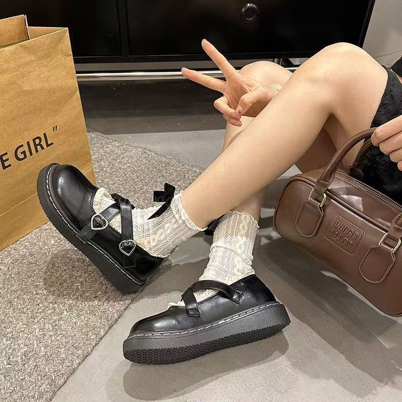 2025春新款日系jk百搭复古浅口厚底一字带玛丽珍单鞋可爱小皮鞋女