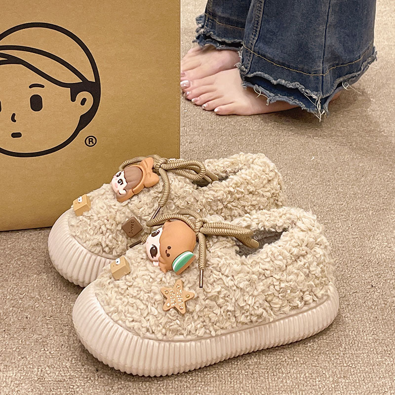 可爱小熊棉拖鞋女款冬季外穿踩屎感防滑室内家居加绒保暖毛毛拖鞋