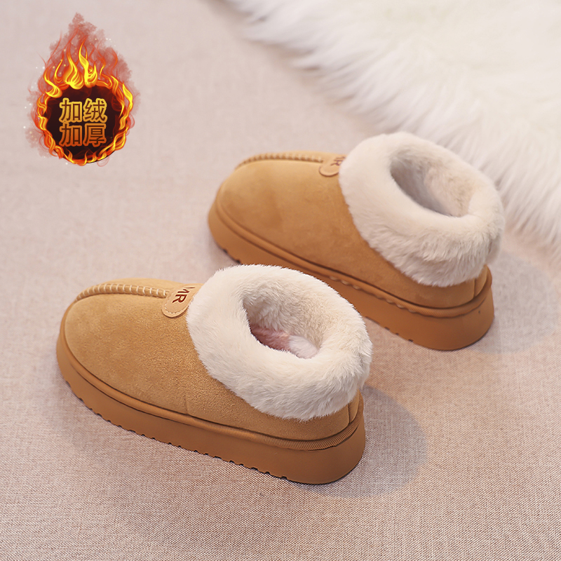 厚底棉拖鞋女冬季卡通可爱羽绒布防水防滑加绒保暖包跟外穿雪地靴