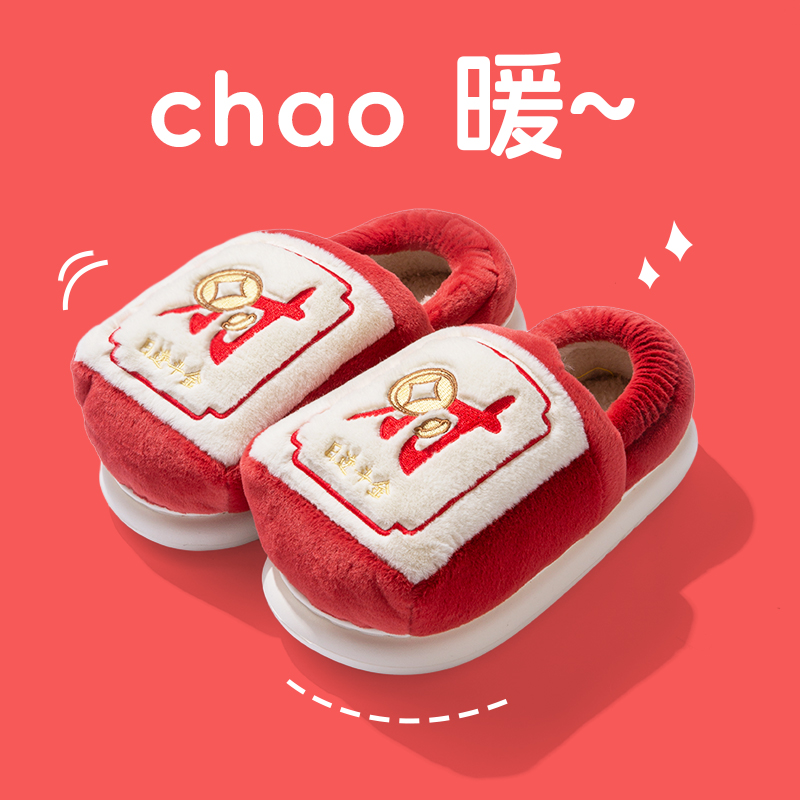 恭喜发财棉拖鞋女款冬季情侣室内居家防滑厚底保暖包跟毛绒棉鞋男