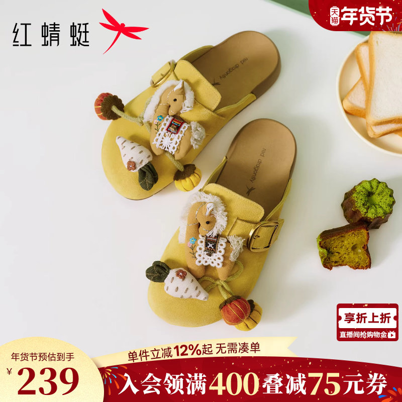 红蜻蜓厚底勃肯鞋女半拖2026春季新款一脚蹬女鞋软底增高包头拖鞋