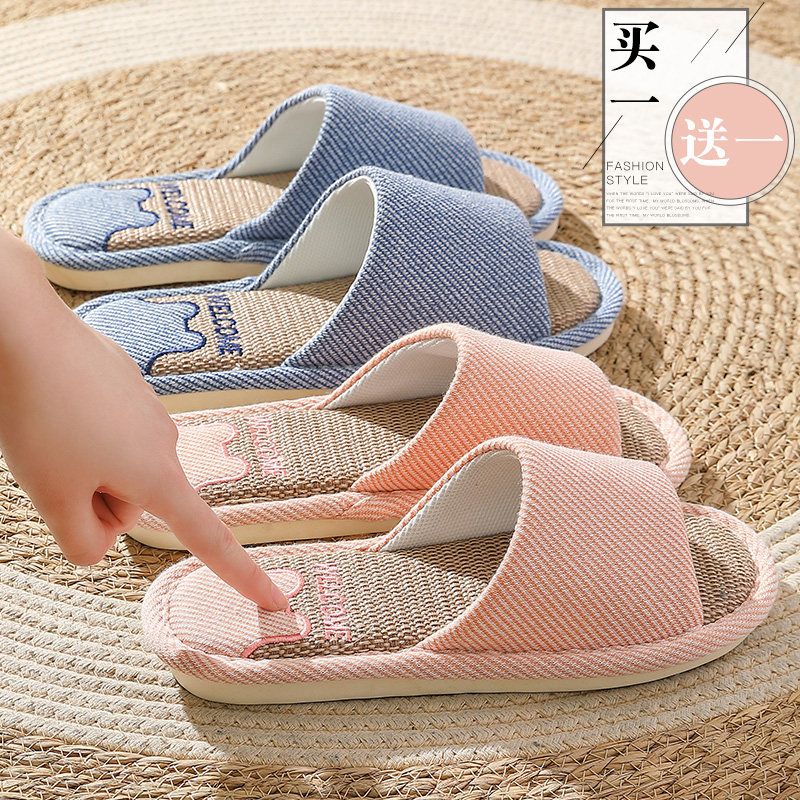 买1送1亚麻拖鞋女款春夏室内家居防滑静音家用吸汗透气棉麻拖鞋男