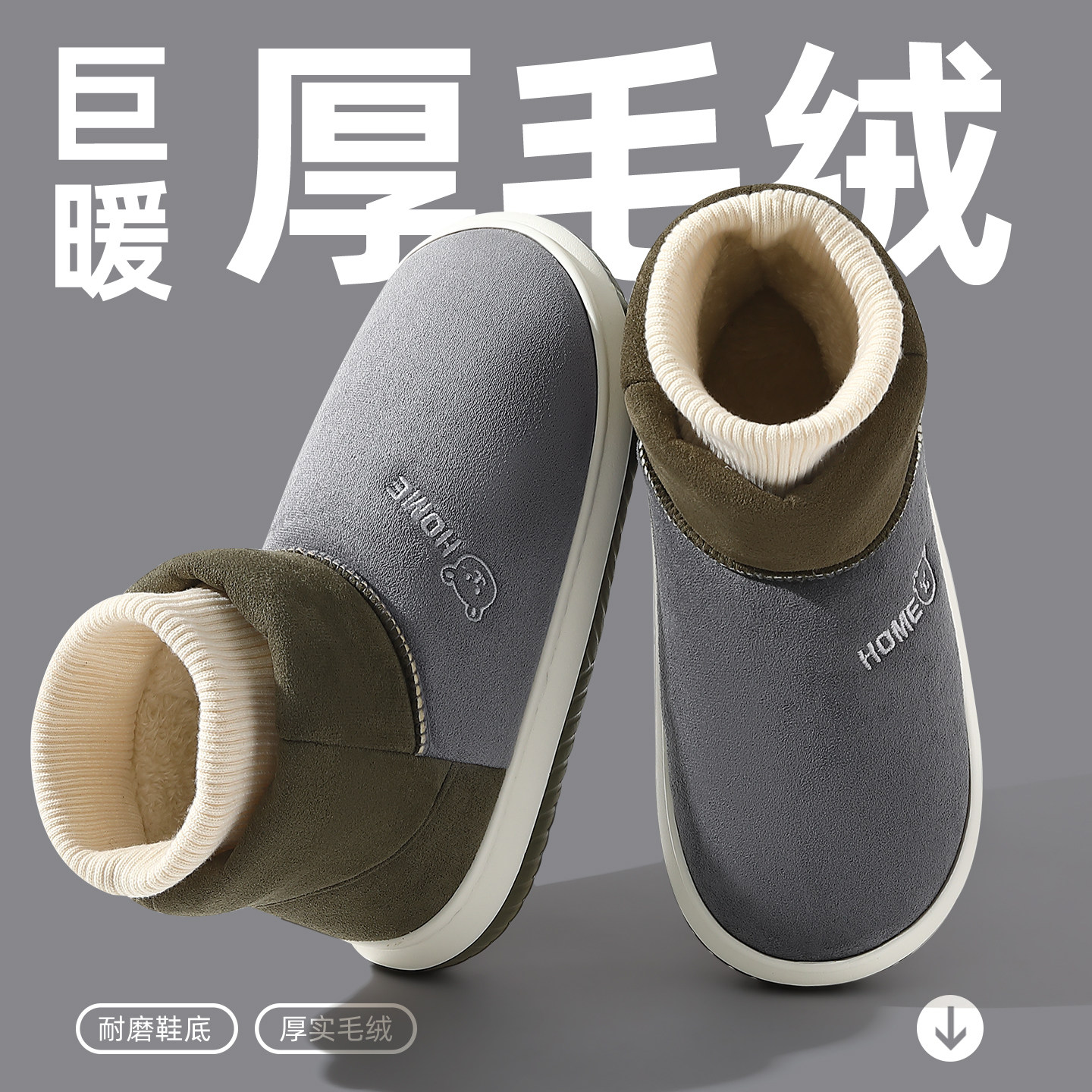 高帮棉拖鞋男士冬季2026新款加绒加厚底可外穿防滑防风保暖棉鞋男