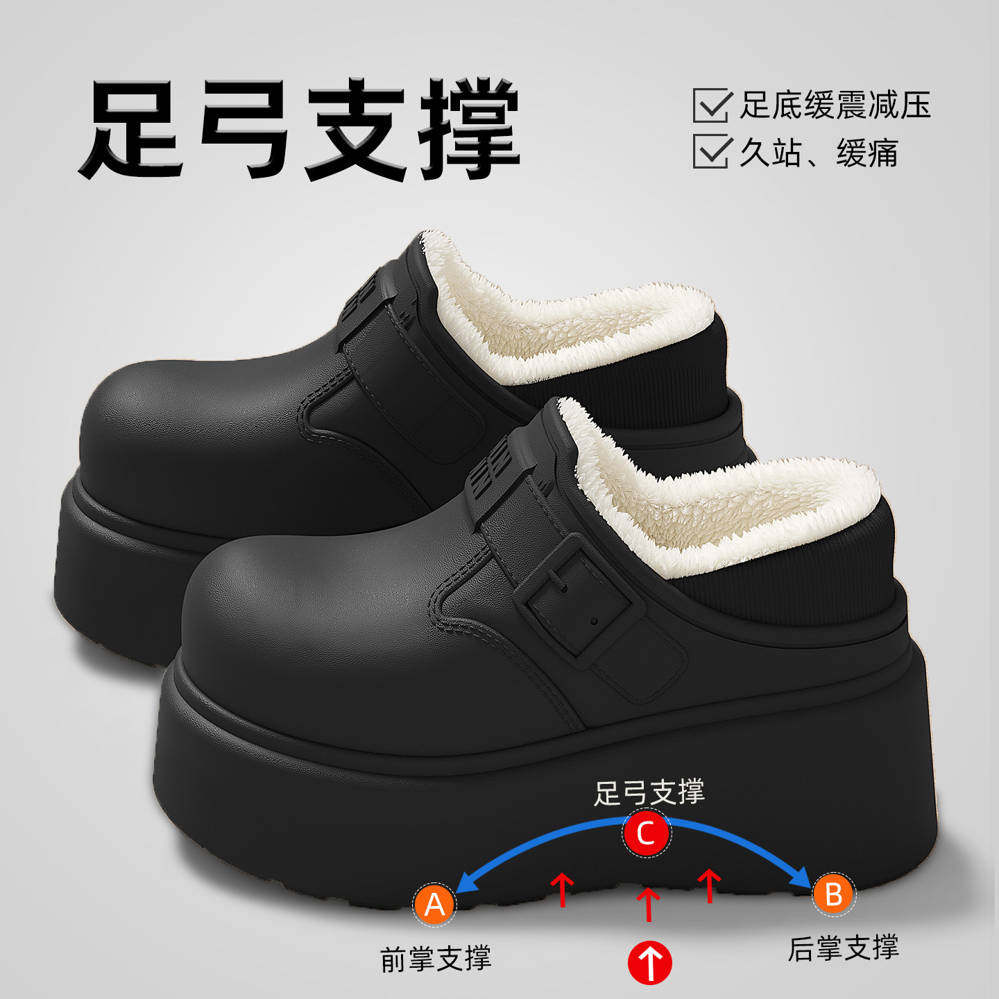 足弓支撑棉拖鞋女款2025新款冬季外穿增高防滑保暖加绒厚底棉鞋女