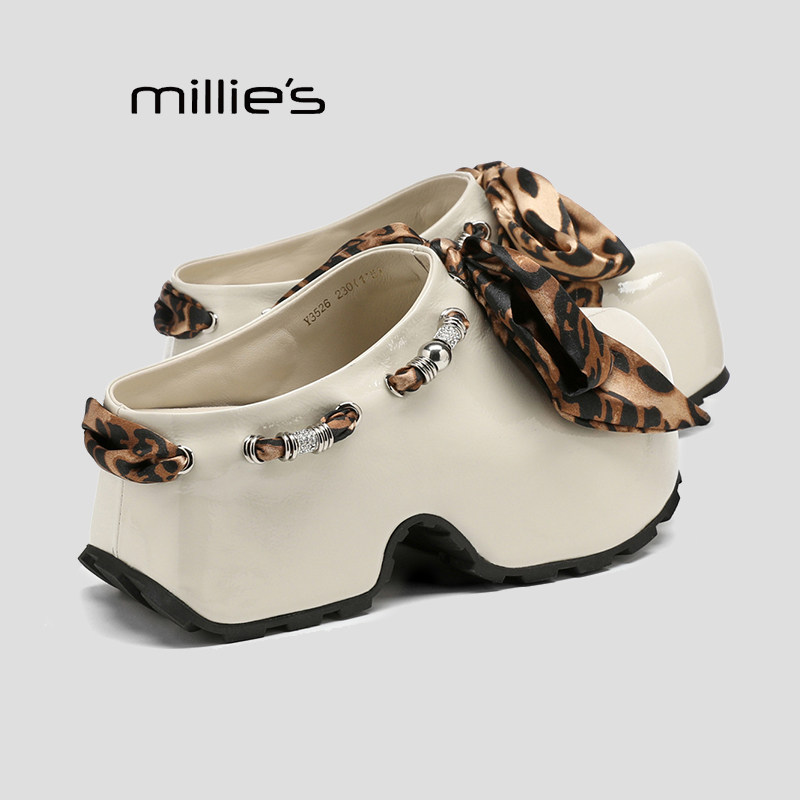 MILLIE'S/妙丽春季女鞋蝴蝶结包头拖鞋一脚蹬勃肯鞋豹纹半拖鞋子Q