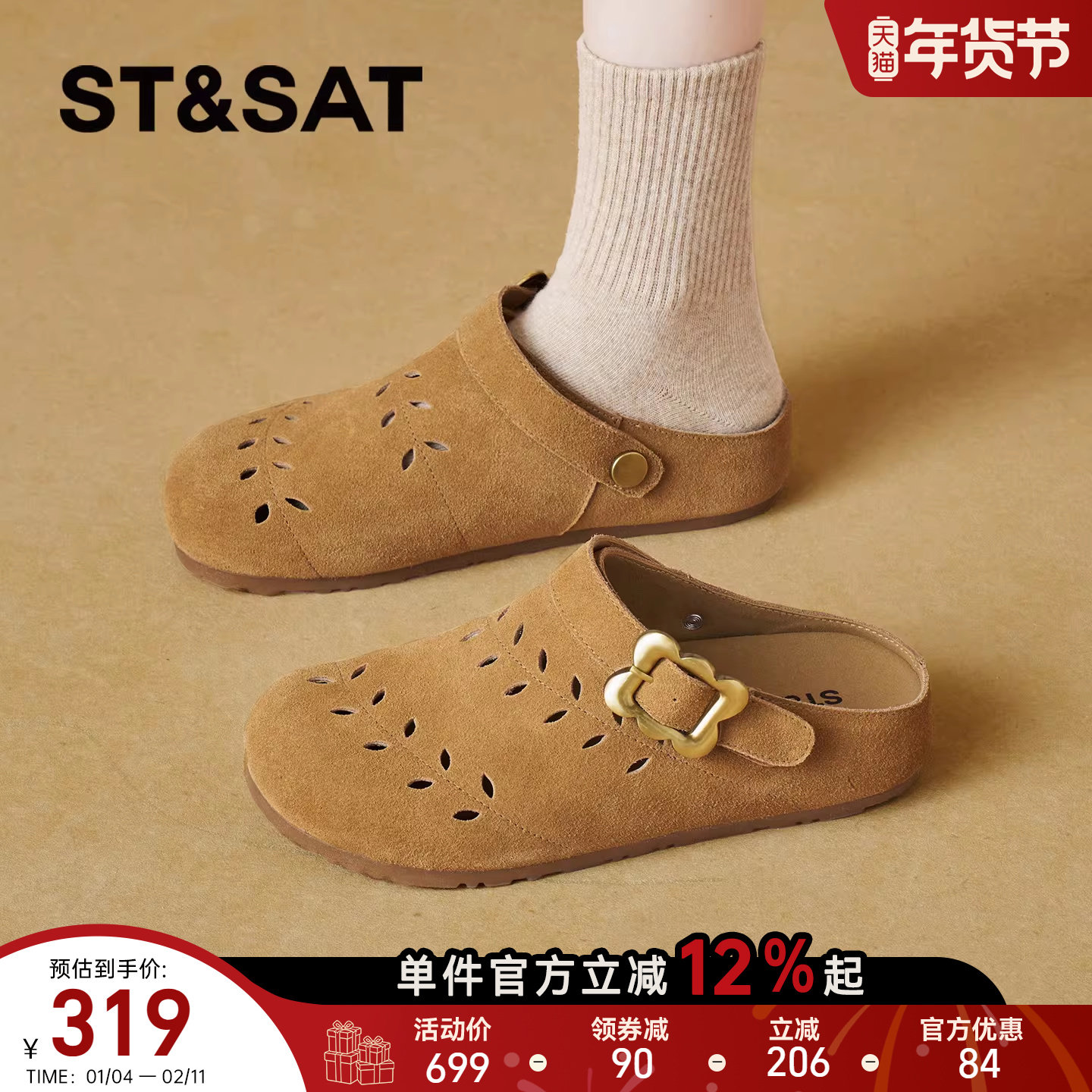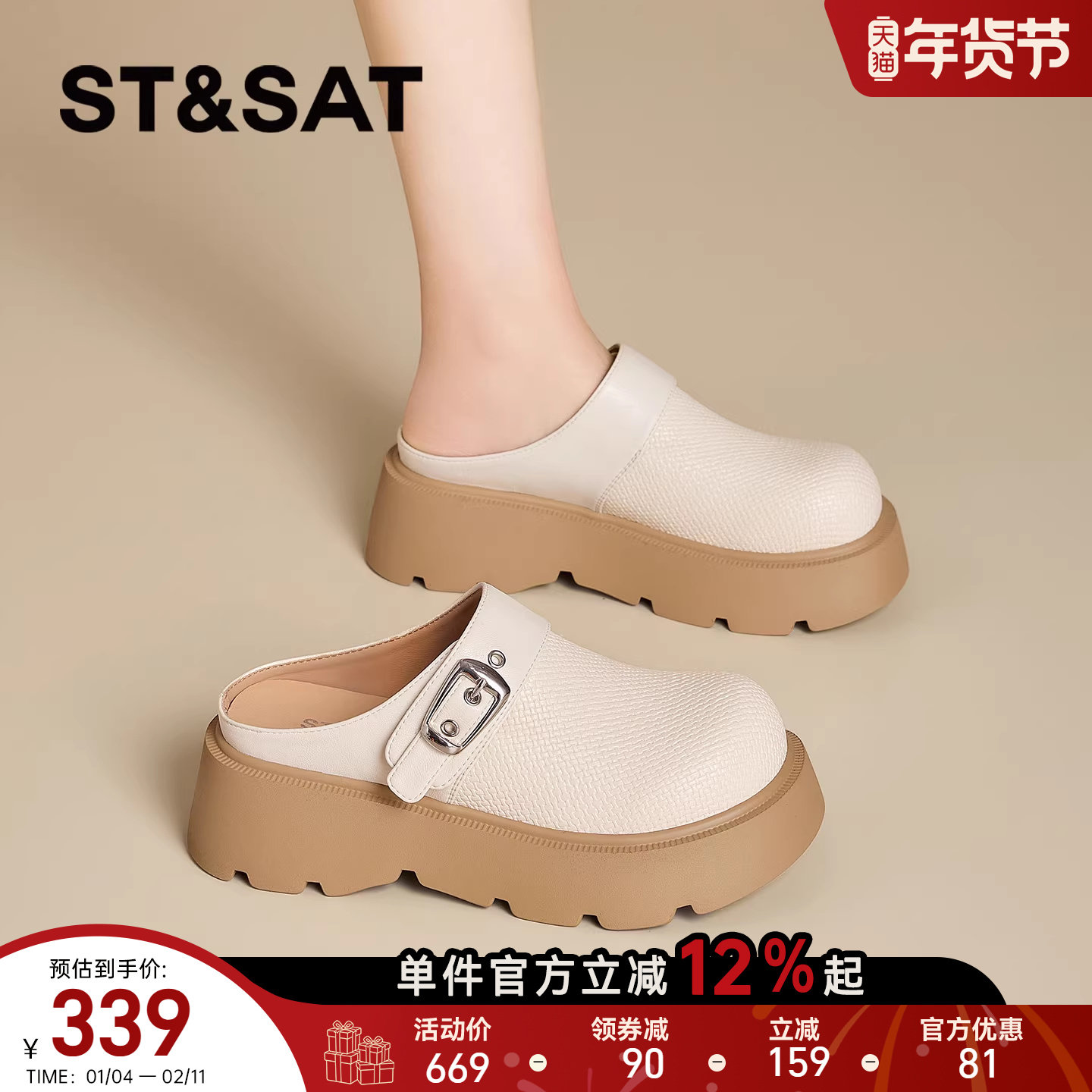 星期六复古勃肯鞋女2026春季新款一脚蹬搭扣包头半拖鞋厚底懒人鞋