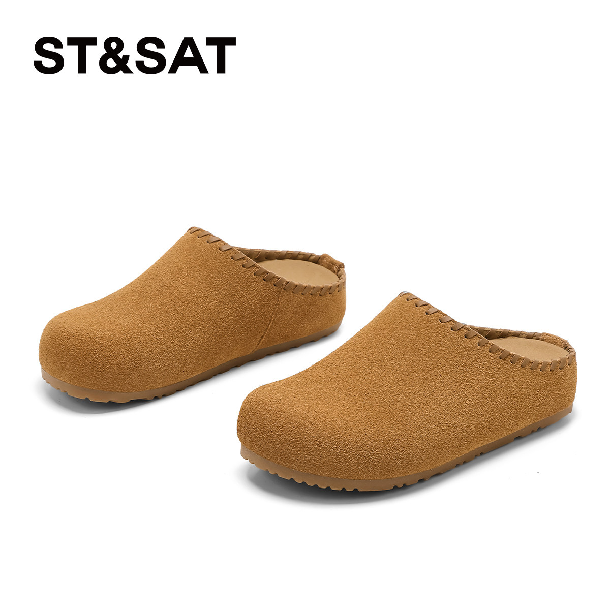 星期六加绒勃肯鞋女2025新款冬季毛毛拖鞋保暖半拖鞋一脚蹬平底鞋