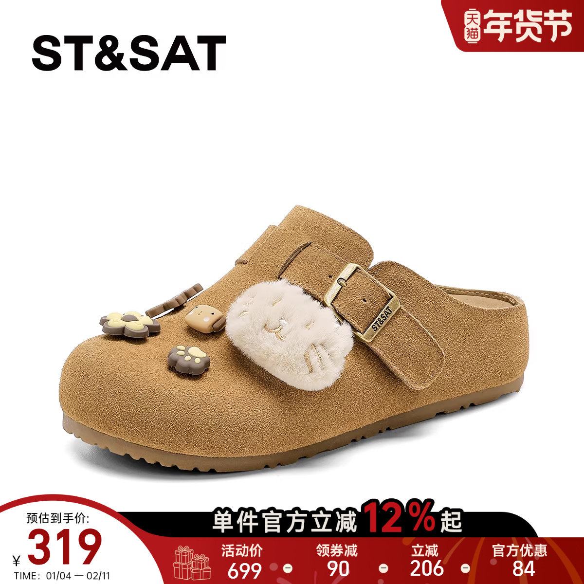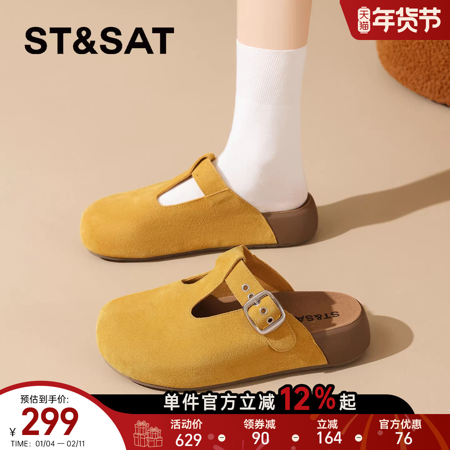 星期六休闲勃肯鞋女2026年春季新款厚底复古搭扣一脚蹬包头半拖鞋
