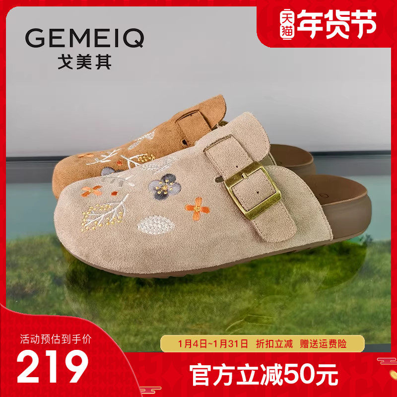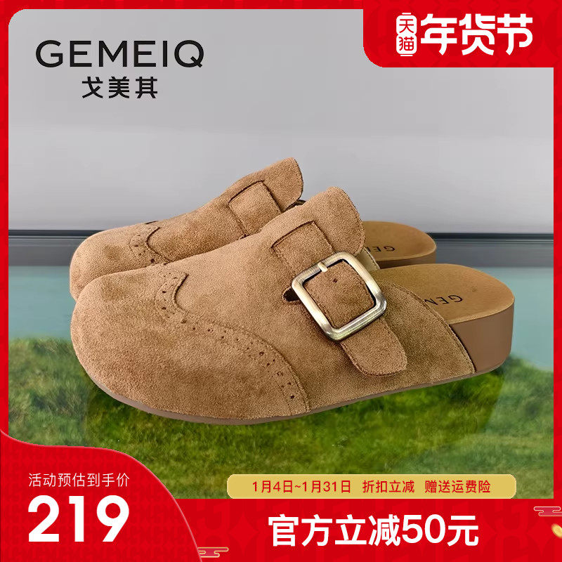 戈美其厚底增高勃肯鞋女外穿2026春季新款包头拖鞋一脚蹬博肯半托