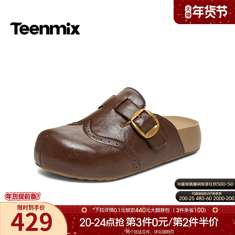 天美意厚底复古勃肯包头半拖鞋女外穿休闲凉拖2026夏新款BN061BH6