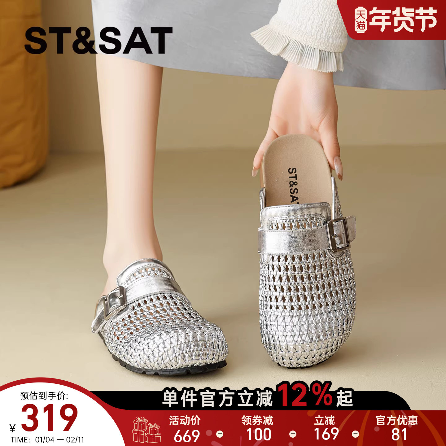星期六镂空勃肯鞋女2026春季新款透气勃肯鞋外穿懒人编织凉拖鞋