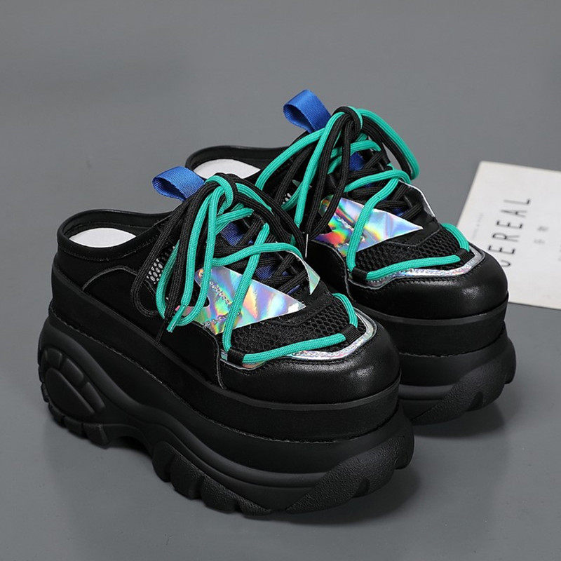 明星10cm真皮内增高包头半拖鞋女夏外穿2026网面厚底无后跟小白鞋