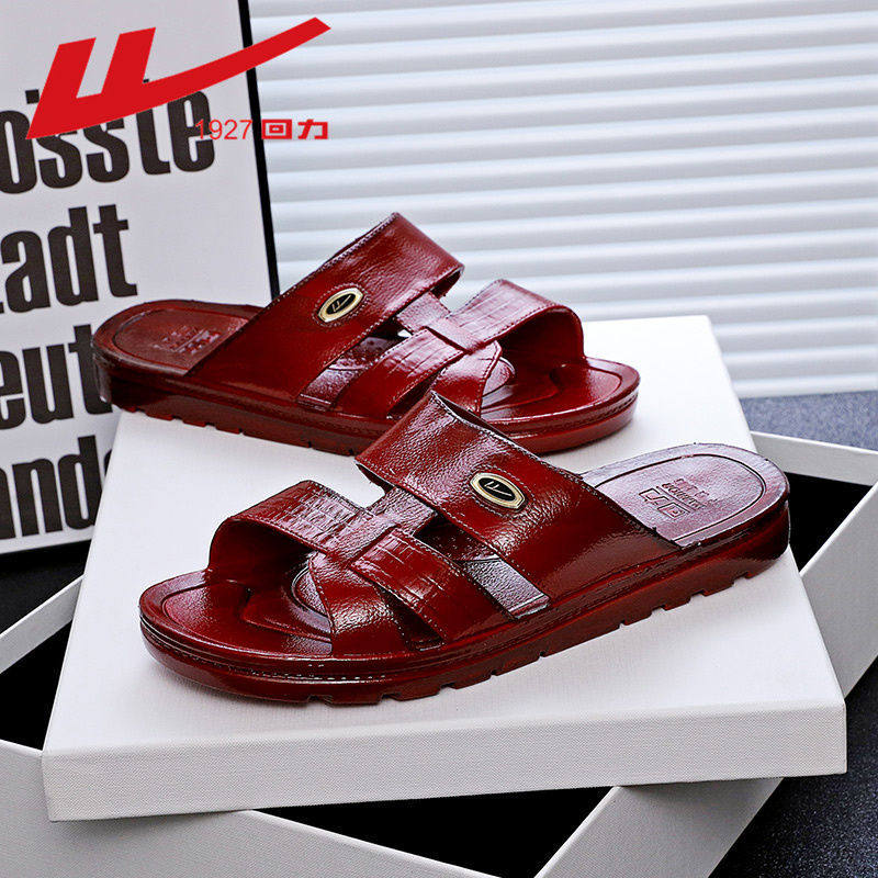 正品回力新款男士中老年油拖鞋外穿耐磨防滑软底舒适家居爸爸拖鞋