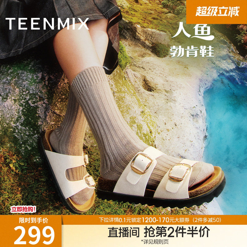 天美意复古厚底人鱼勃肯拖鞋女外穿凉拖海边度假休闲凉鞋夏季新款