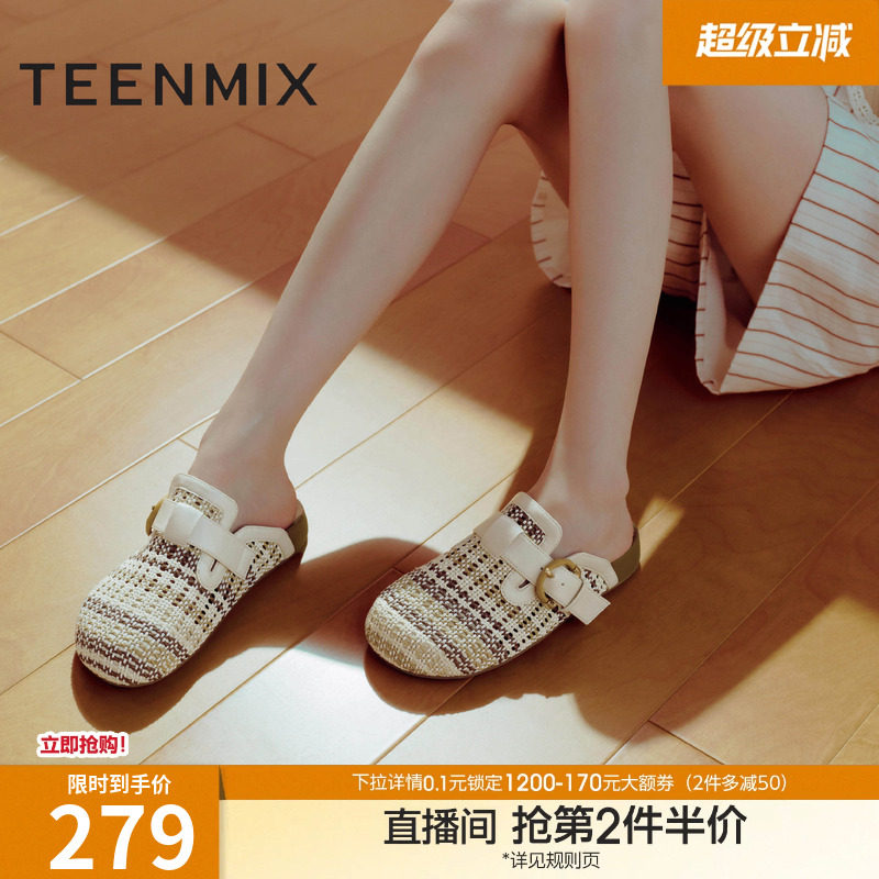 天美意厚底编织勃肯包头半拖鞋女外穿休闲凉拖夏季新款BL451BH5