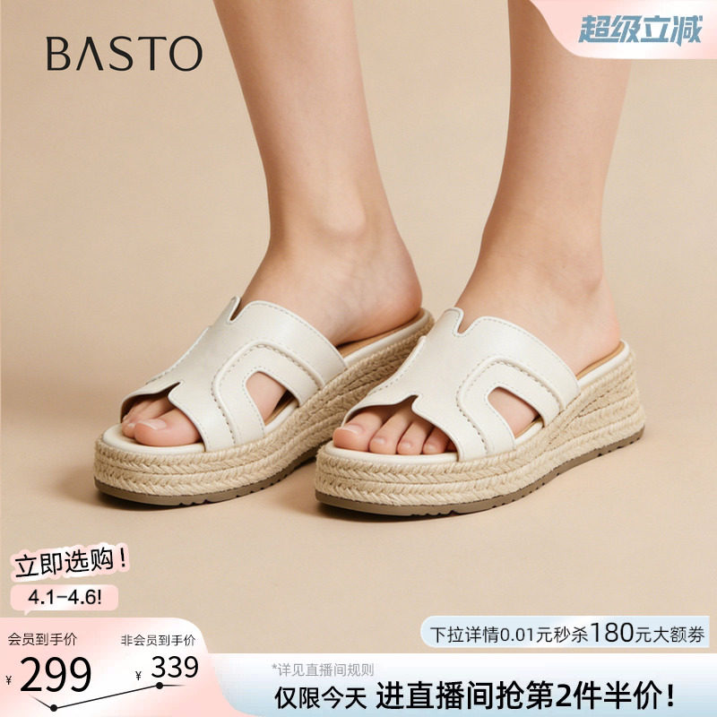 百思图2026夏季新款草编厚底一字拖休闲度假外穿女拖鞋F2112BT6