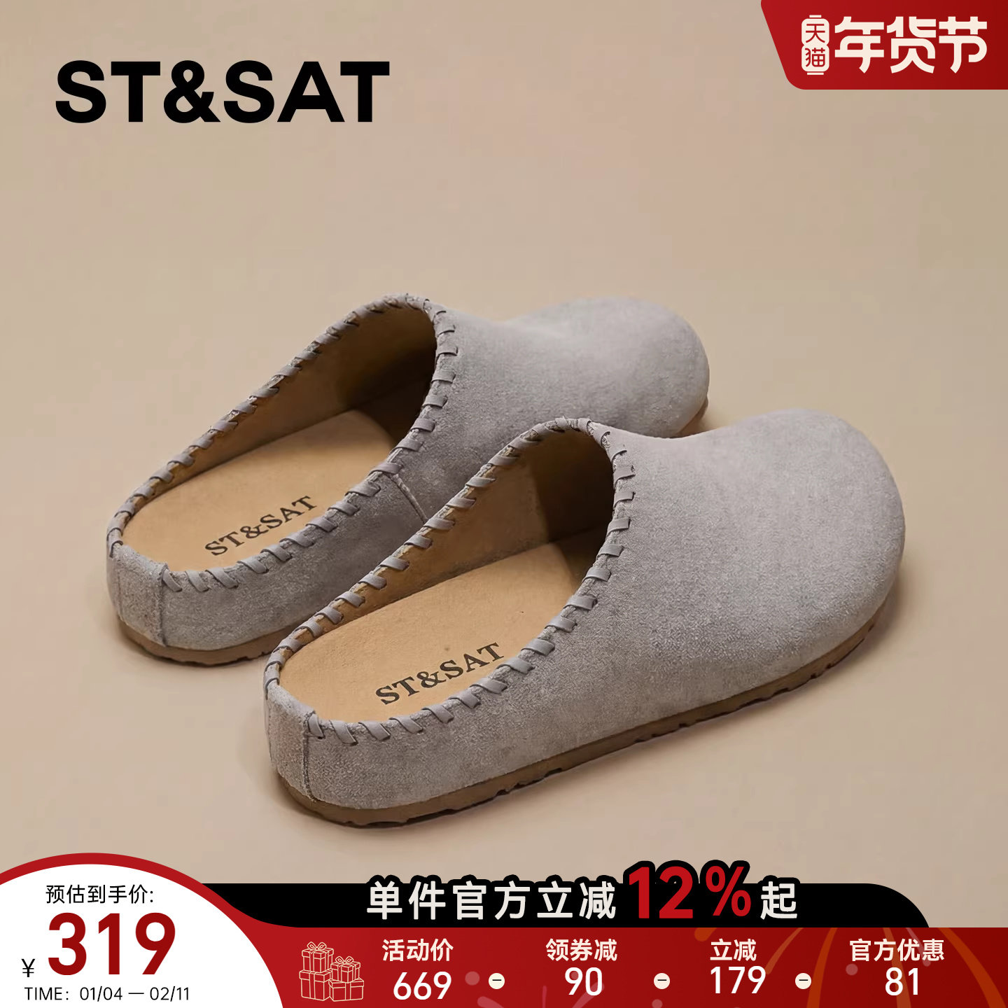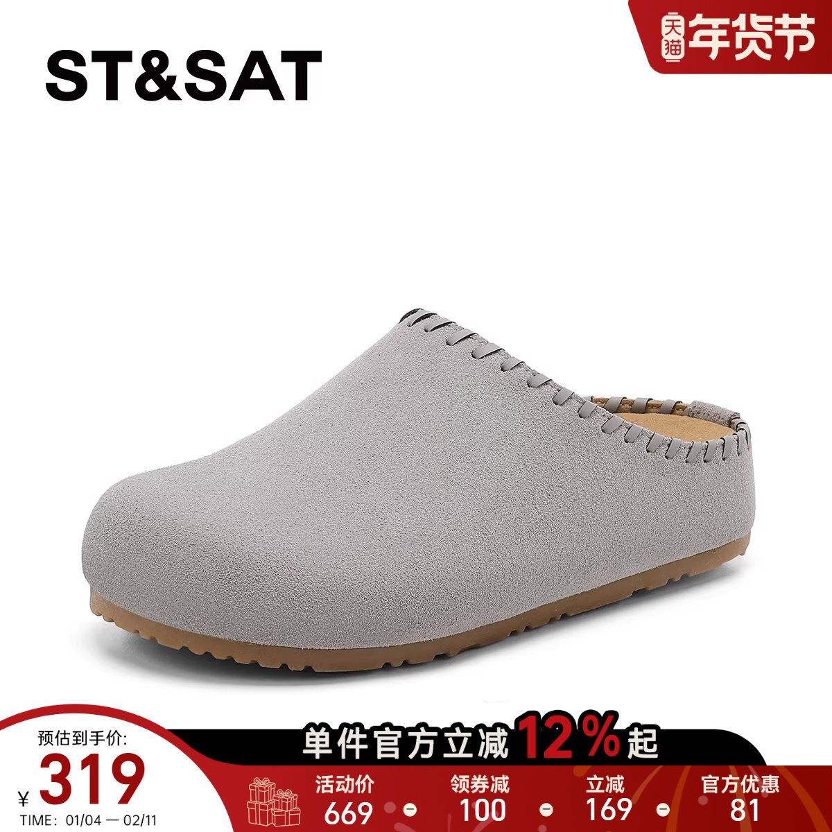 星期六反绒勃肯鞋女2026春季新款一脚蹬简约包头半拖鞋休闲运动鞋