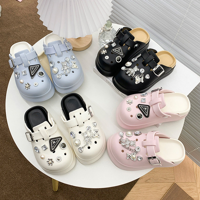 女童防滑装饰凉拖鞋夏季儿童外穿洋气轻便洞洞鞋搭扣百搭包头拖