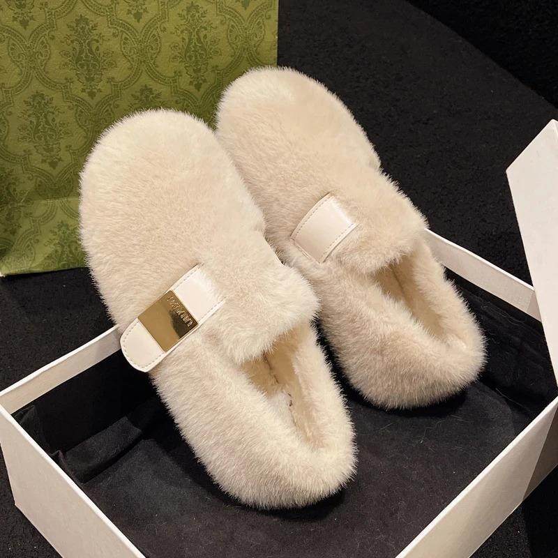 觅华轻奢女鞋企业店平底包头毛毛拖鞋女外穿新款秋冬高级感一脚