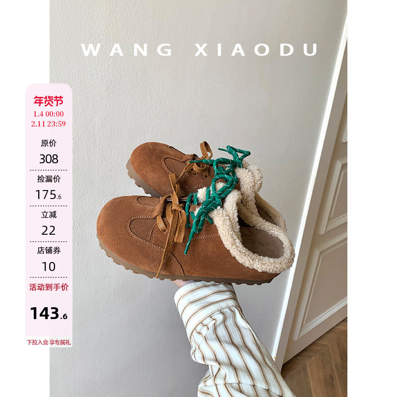 【王小毒】雪顶摩卡○鸳鸯鞋带保暖毛毛鞋女冬季新款休闲拖鞋