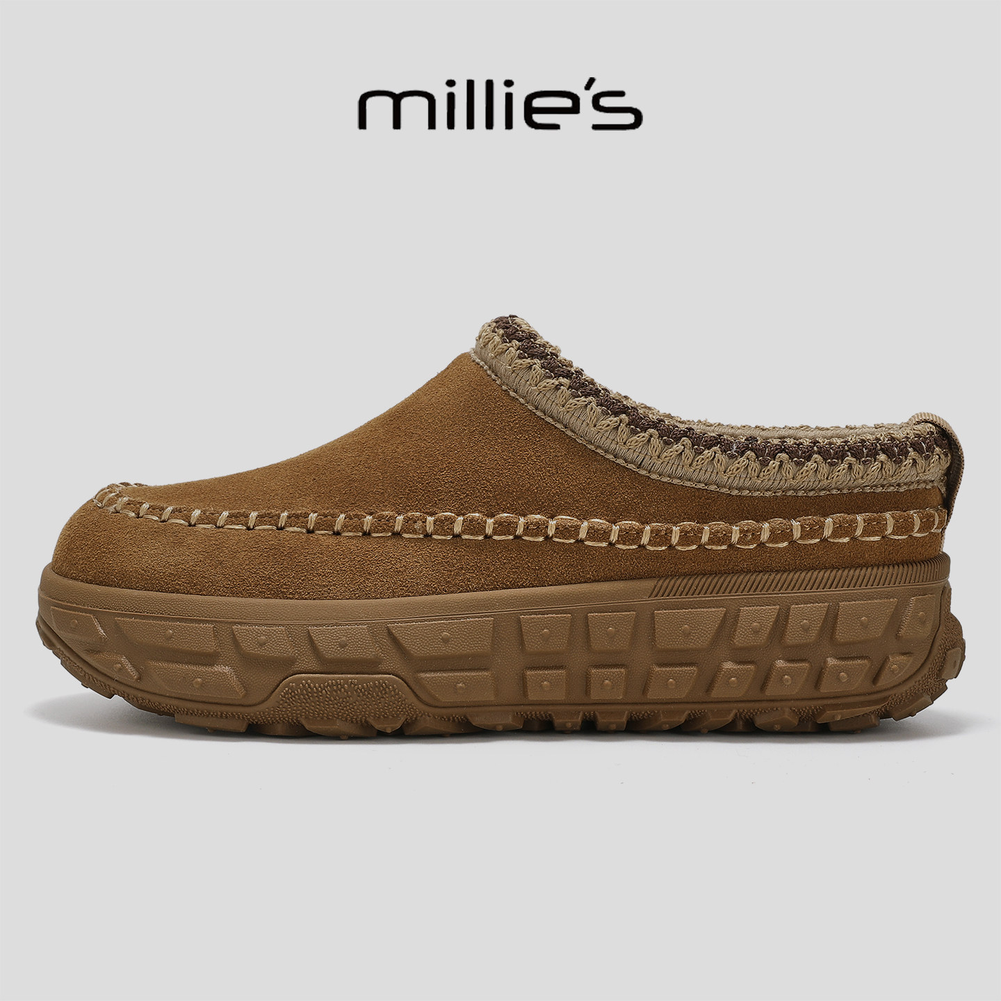 MILLIE'S/妙丽2025新款冬季加绒保暖户外时尚毛毛鞋日常包头拖鞋