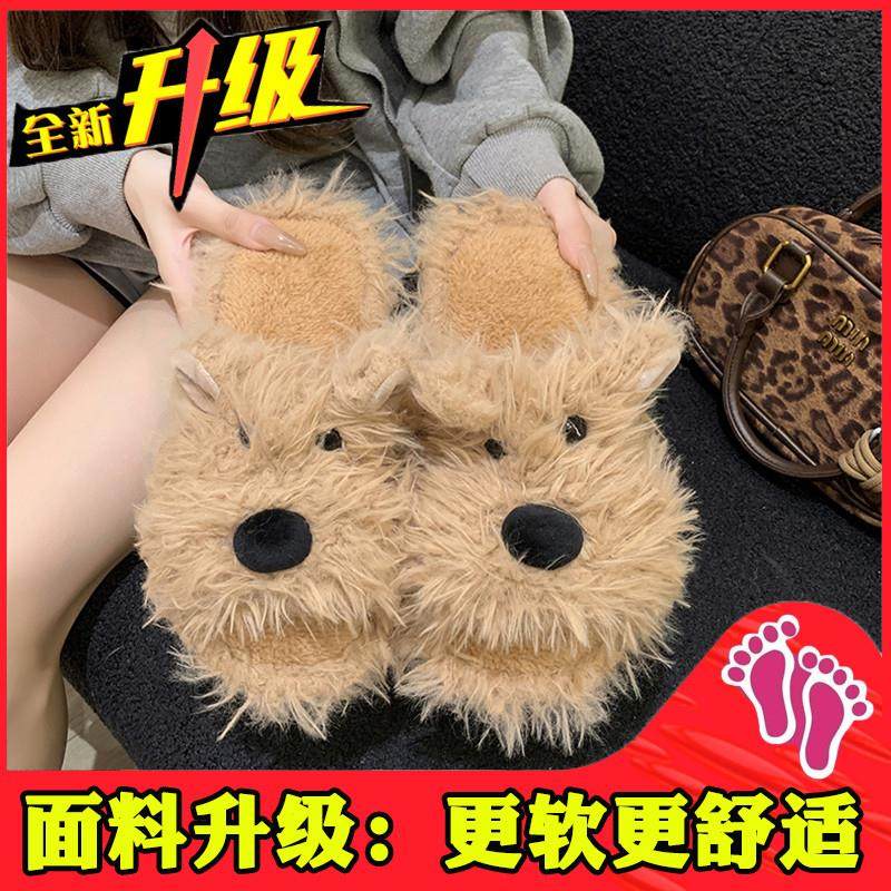 潦草小狗西高地毛毛拖鞋女款居家保暖2025秋冬新款可爱毛绒加厚鞋